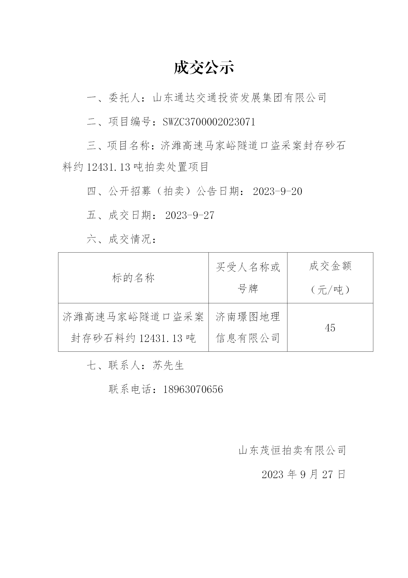 濟(jì)濰高速馬家峪隧道口盜采案封存砂石料約12431.13噸拍賣處置項(xiàng)目