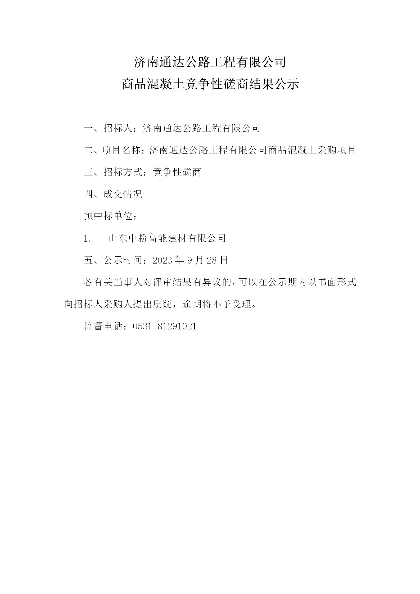 南通達公路工程有限公司 商品混凝土競爭性磋商結(jié)果公示