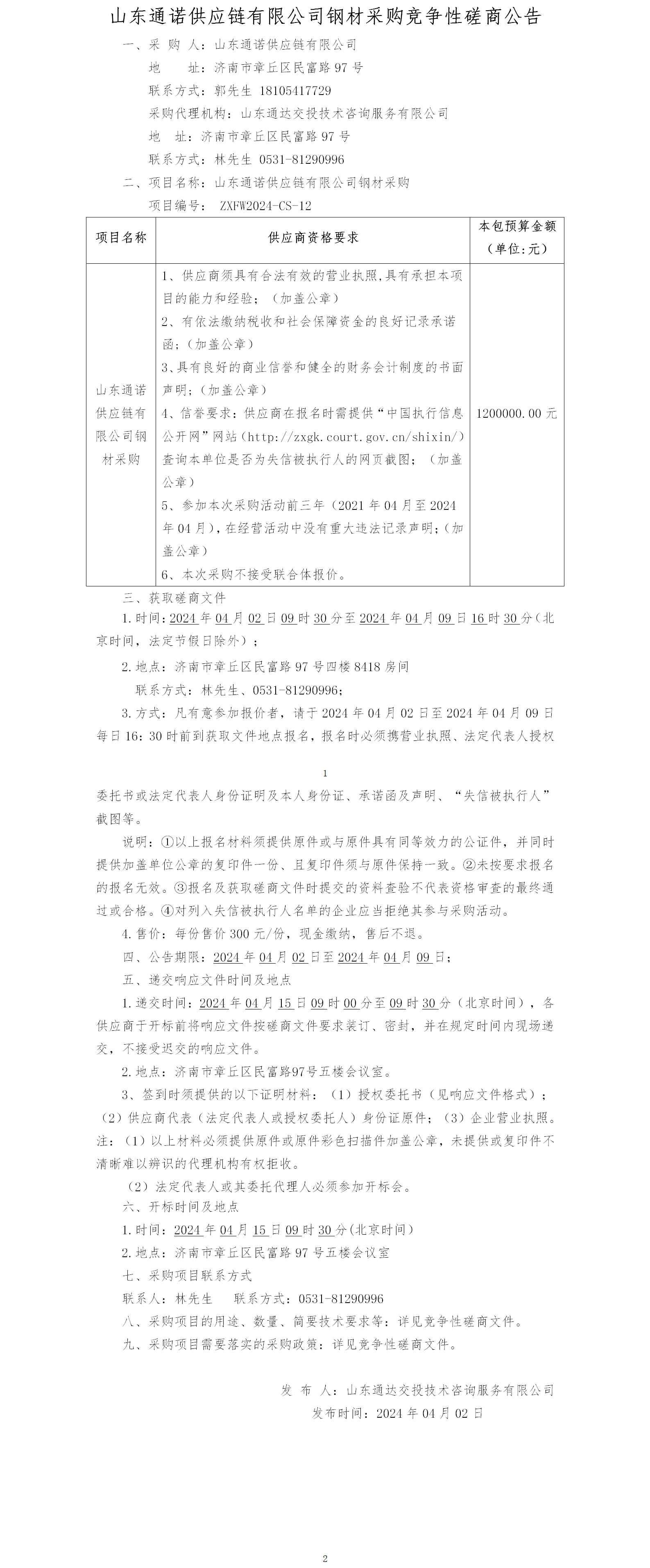 山東通諾供應(yīng)鏈有限公司鋼材采購(gòu)競(jìng)爭(zhēng)性磋商公告