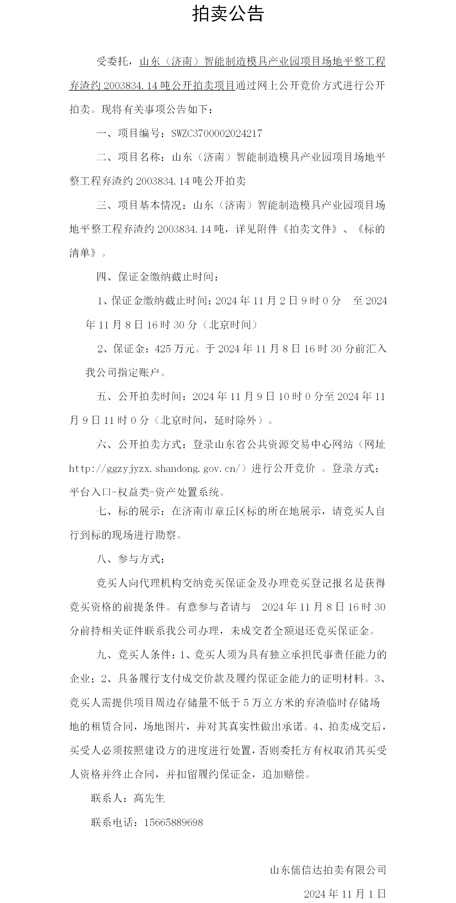 智能制造模具產(chǎn)業(yè)園項目場地平整工程棄渣約2003834.14噸公開拍賣