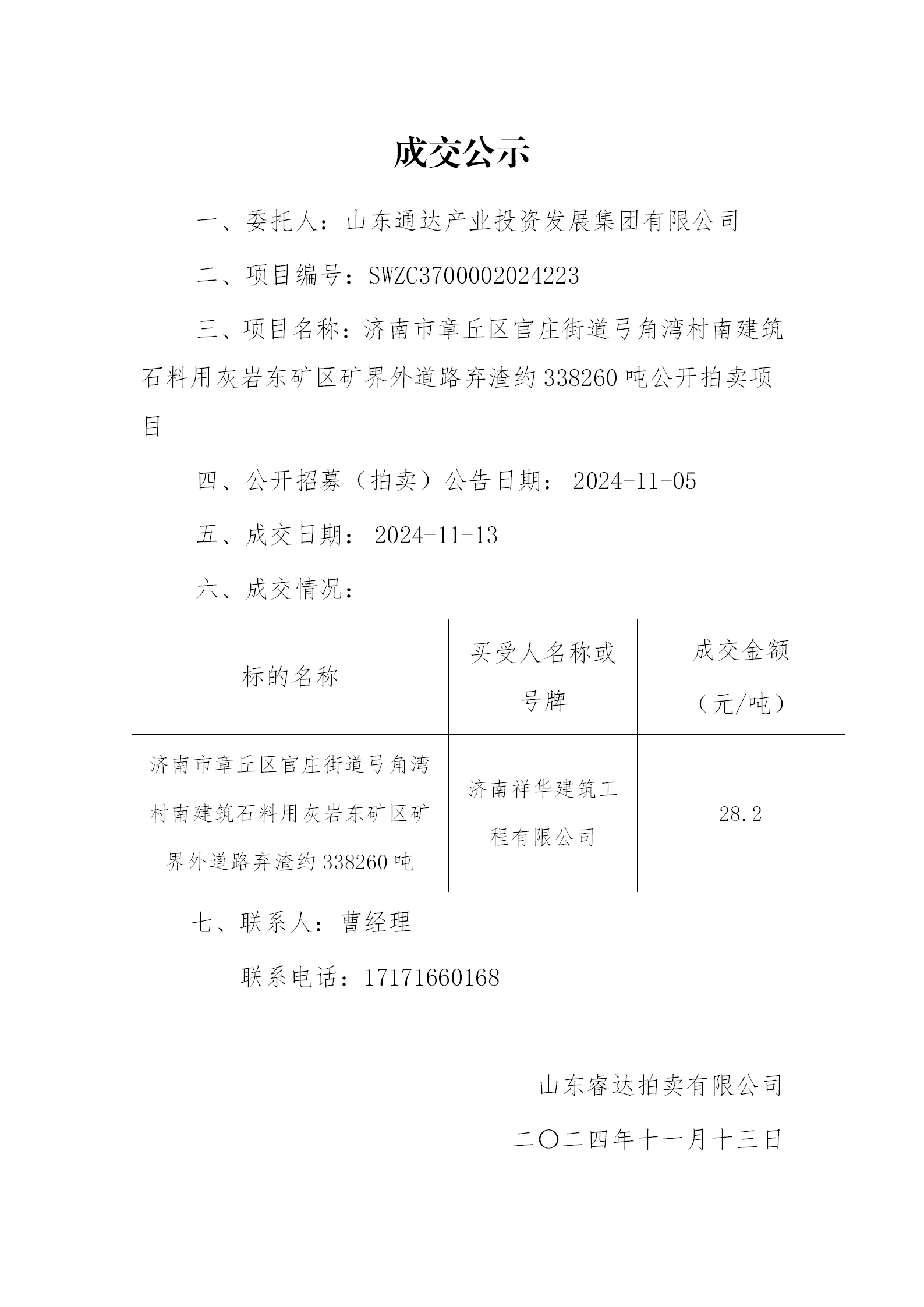 濟南市章丘區(qū)官莊街道弓角灣村南建筑石料用灰?guī)r東礦區(qū)礦界外道路棄渣約338260噸公開拍賣項目