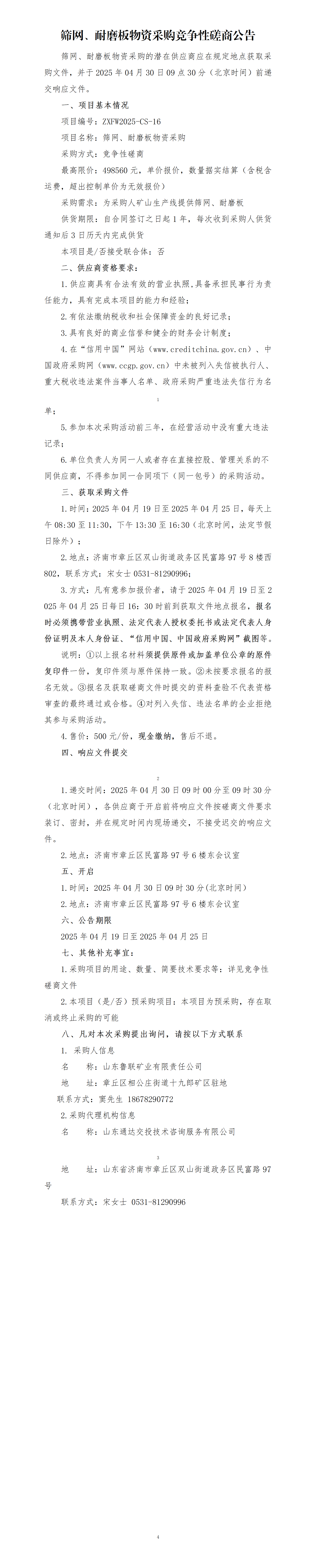 篩網(wǎng)、耐磨板物資采購競爭性磋商公告