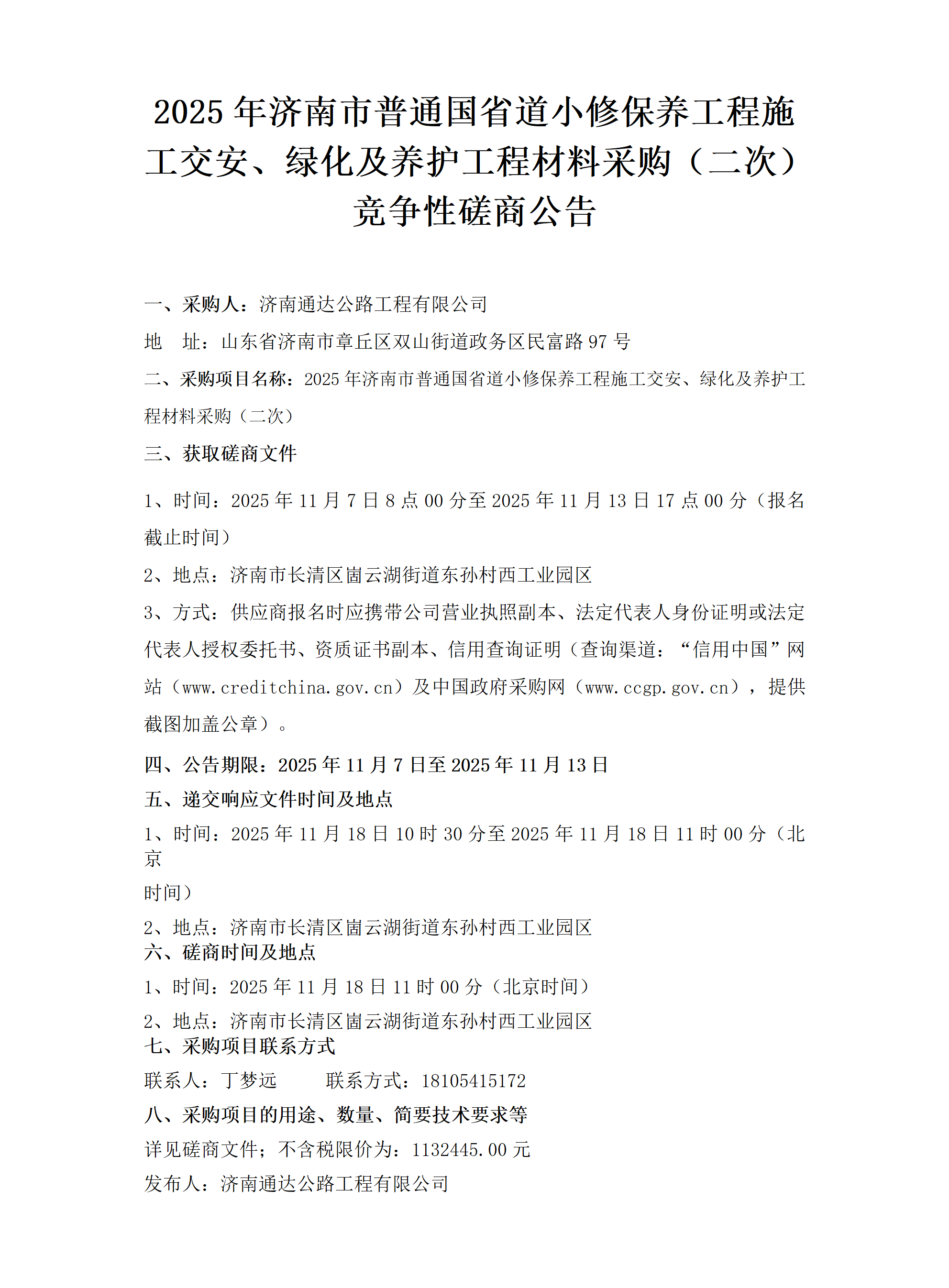 2025年濟(jì)南市普通國省道小修保養(yǎng)工程施工交安、綠化及養(yǎng)護(hù)工程材料采購(二次) 競爭性磋商公告